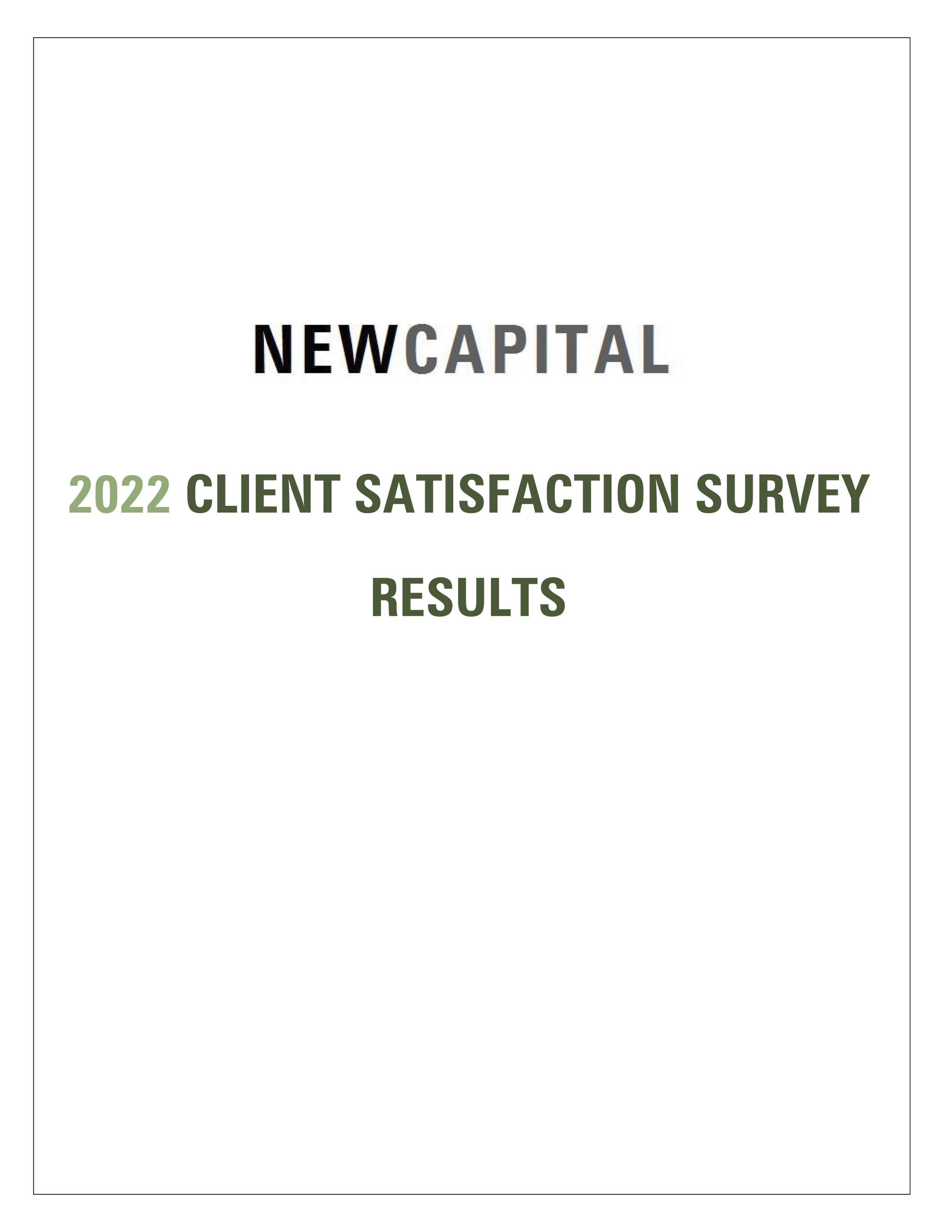 Thank you to our clients who participated in the 2022 New Capital Client Satisfaction Survey. The data gathered from the responses provides us with valuable information regarding our services, operations, and professional relationships so that we can continue to improve for you.