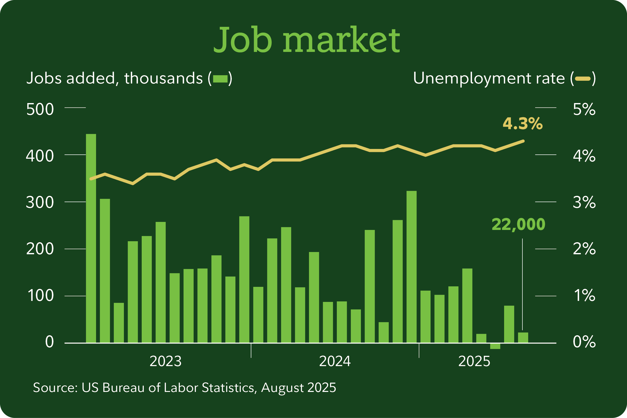 Recent stark revisions to payroll numbers showed that the US has been creating far fewer jobs than previously reported. Norimoto says those numbers reflect slowing demand for labor, which has been met with a decline in the supply of labor—driven by a steep decline in immigration. She adds that the revisions weren’t a complete surprise, because the flow of immigration had dropped significantly and other measures of job growth had already shown signs of flagging. Unemployment also rose in the most recent reading, ticking up to 4.3% in August—its highest level in almost 4 years.