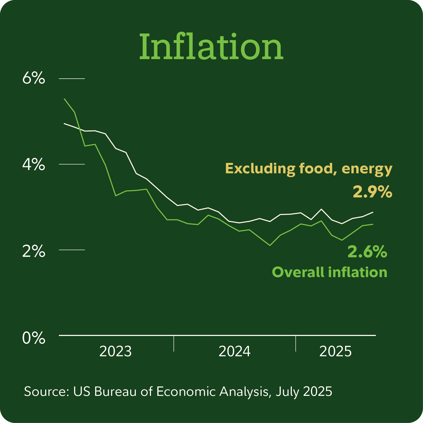 Although inflation has crept up slightly in recent readings, the modest pace of price increases has surprised many economists—who expected tariff-related inflation to begin showing up more significantly over the summer. “As of right now, we haven’t seen a huge reacceleration of inflation,” says Garvey.