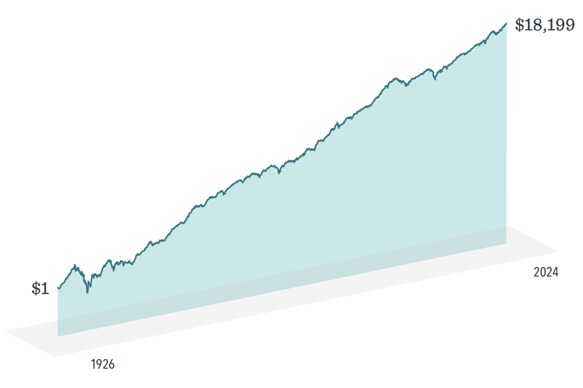 There are always plenty of surprises and fluctuations along the way. Individual stocks and sectors go up and down based on current events, earnings reports, and shifting consumer sentiment. But zoom out and the big picture becomes clear: Over the past century, the US stock market has consistently risen, returning on average about 10% a year.1 This is why I have unwavering faith in markets. By owning a broad slice of global markets, we can participate in the upside of human problem-solving and innovation as it takes place across a vast array of companies and the untold number of ideas their employees develop.